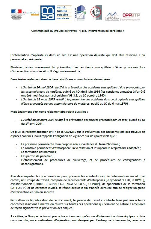 On peut ainsi lire que « les travaux sur cordes doivent être supervisés », ce qu’il n’était pas prévu de lire si nous n’avions pas insisté sur ce point.